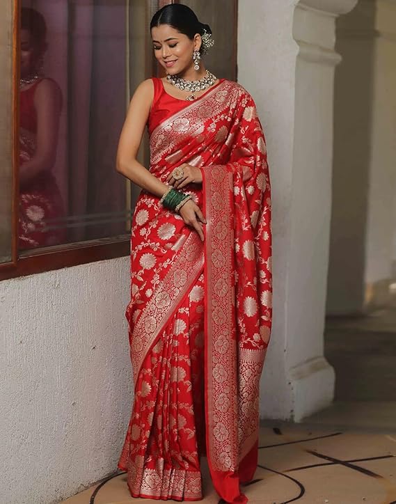 Women’s Banarasi Silk Saree Pure Silk Saree With Unstitched Blouse Piece
